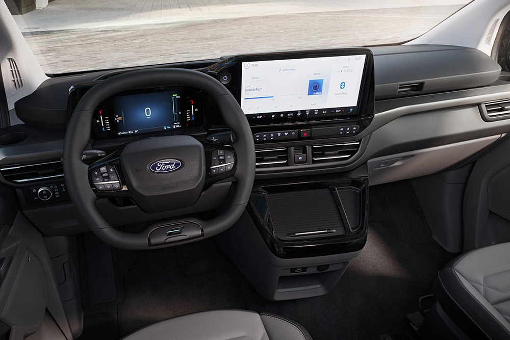 Considera il Tourneo il tuo ufficio in movimento. Ford SYNC 4 offre una connettività migliorata grazie a un nuovo modem 5G, un'integrazione perfetta con lo smartphone, un touchscreen da 13" e il riconoscimento vocale. L'innovativa funzione di inclinazione del volante pieghevole consente di creare una scrivania angolata quando si è parcheggiati, ideale per montare un laptop o pranzare.