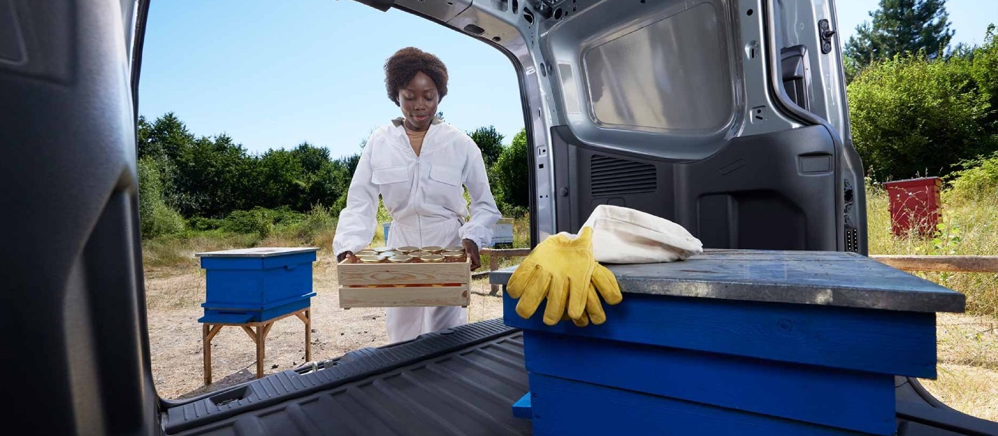 Riprogettato per massimizzare la capacità di carico. Con una larghezza di oltre 1,2 m tra i passaruota, il Transit Courier può trasportare due Euro Pallet a livello del pianale. Le luci del vano di carico a LED offrono una chiara visibilità del tuo spazio di carico.
