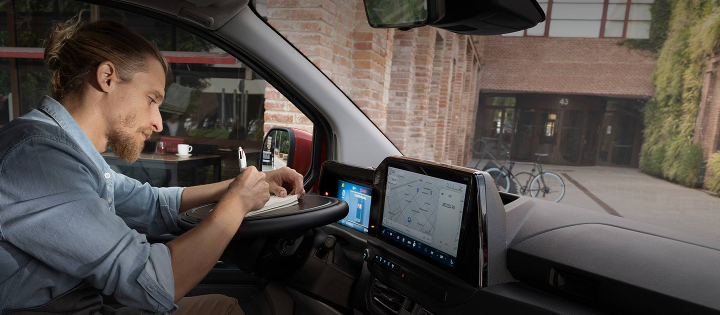 Progettato per i conducenti addetti alle consegne, funzioni come lo spegnimento del motore, la chiusura dei finestrini o il rilevamento dei pericoli possono essere automatizzate tramite il touchscreen.