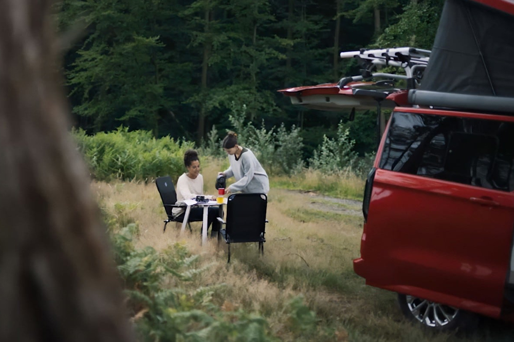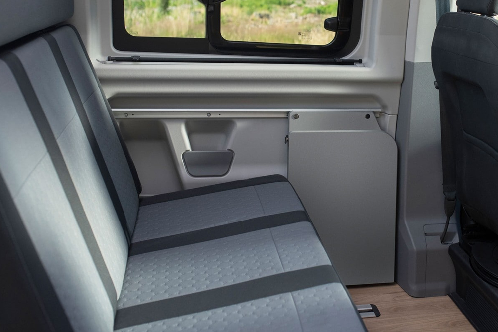Mangia i tuoi piatti preferiti all'aperto, grazie al nuovo tavolo e alle due nuove sedie da campeggio. E una volta terminato, riporli sarà ancora più facile con lo stivaggio integrato nella porta scorrevole a destra e all'interno del portellone.