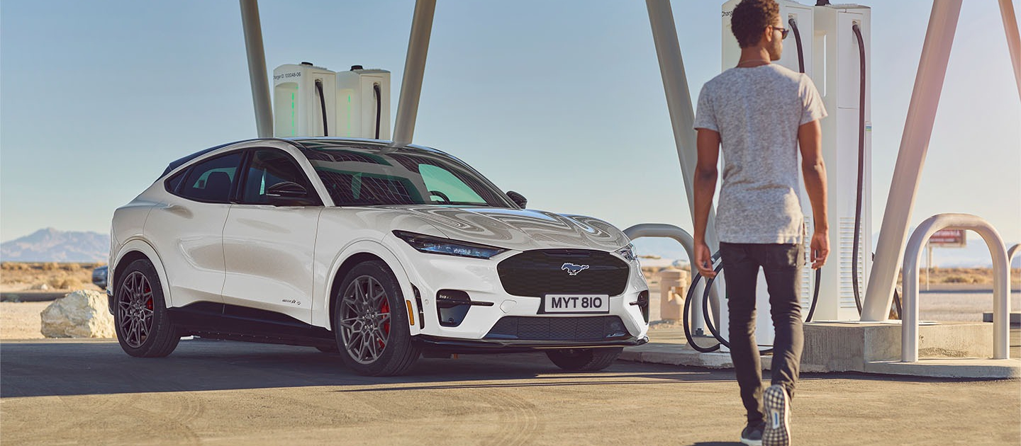 Mustang Mach-E è dotata di un cavo di ricarica AC Mode 3 da utilizzare in qualsiasi stazione di ricarica AC pubblica. Per ricaricare la tua Mustang Mach-E da una presa di corrente 230V, acquista il cavo di ricarica opzionale Mode 2.