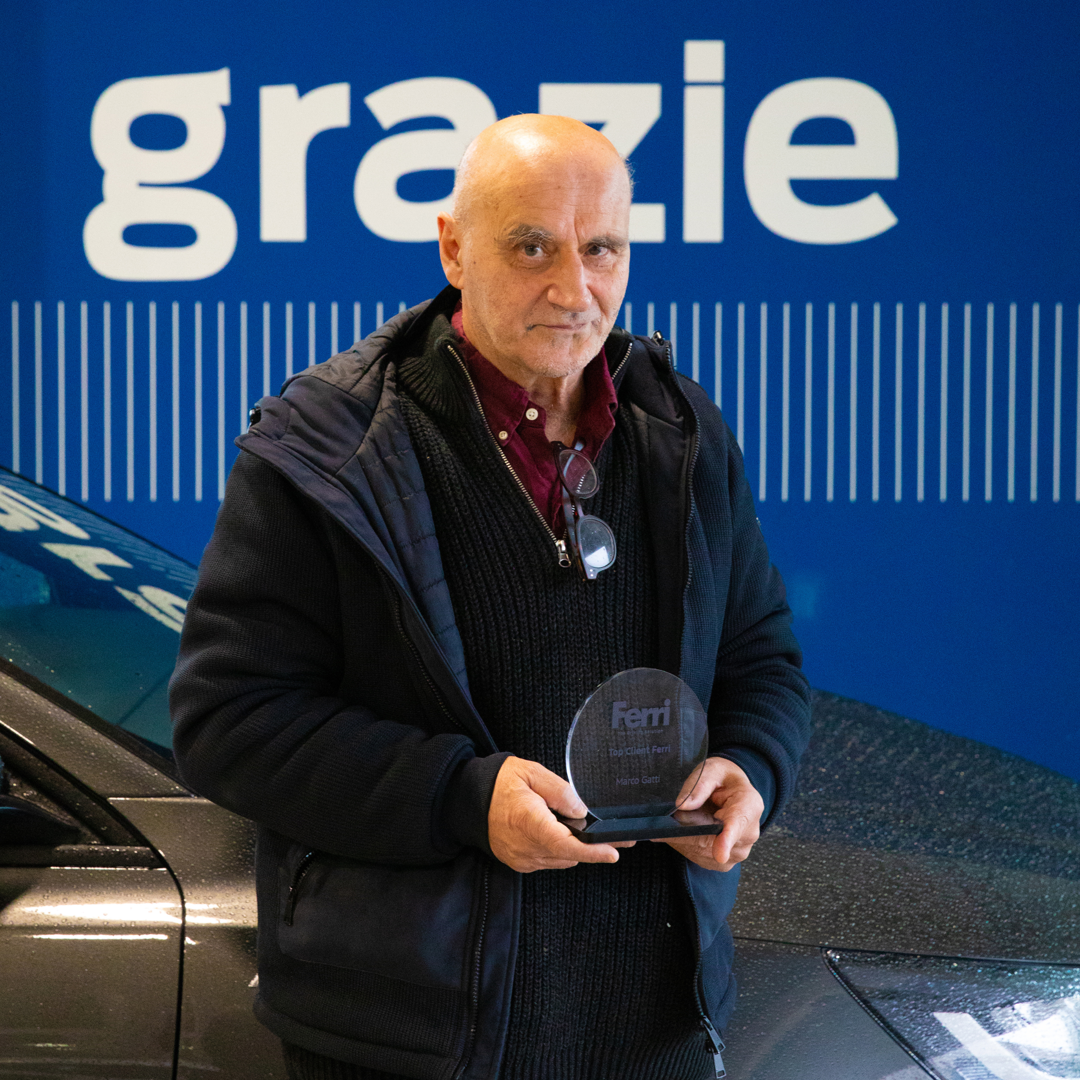 Per celebrare questo traguardo speciale, Ferri ha voluto ringraziare Marco con un gesto simbolico: alla consegna della nuova auto, gli sono stati donati una targa celebrativa come Top Client Ferri, un gadget Ford e un pieno di carburante.