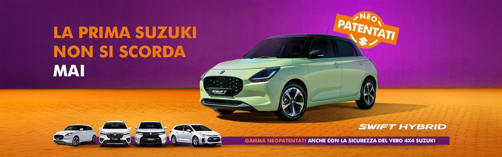 Se hai appena conseguito la patente, per tutti i 3 anni del periodo previsto dalla nuova normativa, potrai guidare la tua Suzuki senza limitazioni! Tutte le vetture della gamma Suzuki sono “Neopatentati ready!”*