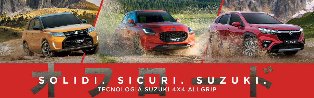 **L’offerta “manutenzione inclusa”, valida fino al 30/04/2026, include i primi 3 interventi di manutenzione ordinaria come previsto dal libretto di uso e manutenzione del modello. Tecnologia 4x4 ALLGRIP non disponibile su Swace. Su Across disponibile tecnologia 4x4 E-Four. Tutti i dettagli sui vantaggi e le promozioni applicabili ai singoli modelli sono disponibili presso le Concessionarie o sul sito suzuki.it. Le immagini delle vetture sono puramente indicative.